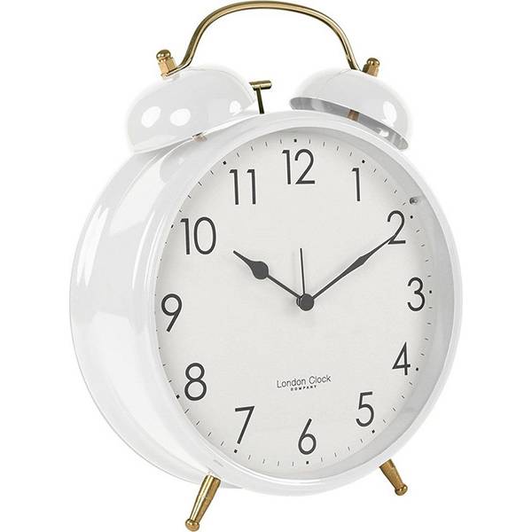 Glockenwecker XXL ⏰ – präzisions Quartzwerk- weisses Zifferblatt- schwarze Klassikzahlen (nicht leuchtend!)- schwarze Zeiger (kein Sekundenzeiger!)- kurzer, schwarzer Alarmzeiger- weiss lackiertes Metall-Gehäuse (poliert)- schwarze Kunststoffrückwand – echtes Mineralglas (flach)- Messing Ständer (Shabby-Chic)Staubgeschützt Nur für den Innengebrauchh: 29.5 cm, b: 23 cm, t: 8 cm, ca. 500g2 Jahre GarantiePreis inkl. Kartonbox, Gebrauchsanweisung, 3 Batterien LR6 Machen Sie mit diesem Wecker eine Reise zurück in die Vergangenheit Der graue London Clock XXL Doppelglockenwecker ist ein echter Klassiker! Durch die schöne Form mit den zwei grossen Glocken nimmt er das originelle und ursprüngliche Design von vielen Weckern wieder auf und wird in Deinem Schlafzimmer zu einem absoluten Blickfang. Da der London Clock Glockenwecker sehr gross ist, können Sie ihn auch gut als Tisch- oder Wanduhr verwenden. Ein präzises Uhrwerk und ein deutlicher Weckton Neben einem schicken Design zählen für einen Wecker natürlich auch vor allem die inneren Werte: Der XXL Wecker verfügt über ein Präzisions Quarzwerk, welches höchste Funktionalität und einen langjährigen Halt verspricht. Ein besonderer Vorteil an diesem Wecker ist aber ohne Frage sein lauter Weckton. Ganz wie in alten Zeiten werden hier die beiden Glocken angeschlagen, wodurch ein kräftiges Läuten ertönt. So wachen Sie garantiert pünktlich auf und sind sofort hellwach! Lies die Uhrzeit perfekt aus verschiedenen Winkeln ab Diese Uhr zeichnet sich vor allem durch sein grosses Ziffernblatt aus. Dieses hat einen weissen Hintergrund, auf den grosse schwarze Klassikzahlen gedruckt wurden. So ist es besonders kontrastreich und kann auch aus der Entfernung immer noch gut abgelesen werden. Wenn Sie nachts die Uhrzeit lesen wollen, können Sie auch das LED-Licht des Uhr einstellen. LONDON CLOCKS Tischuhren Die 1922 gegründete London Clock Company verfügt über eine umfassende Uhrenkollektion von klassischen und Vintage-Styel Wand- und Tischuhren. Alle London Clock Uhren sind CE zertifiziert und natürlich liefern wir die Batterien immer GRATIS mit ✓ Sie können alle Modelle mit 5% Vorkasse Rabatt bestellen. Original London Clock Uhr vom Schweizer Uhrmacher Neue Uhr mit Garantie des Herstellers. Portofreie Lieferung oder Abholung in Basel. Die Uhr kann gerne vor einer Kaufentscheidung besichtigt, und auch vor Ort in Basel abgeholt werden. Wir beraten Sie gerne, bei der Wahl der geeigneten Uhr. Rufen Sie uns einfach an: Hotline