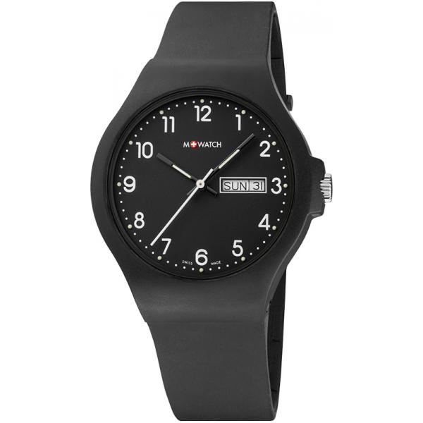 M-WATCH Core 42, Schweizer XL Quartzuhr Tag Datum schwarz