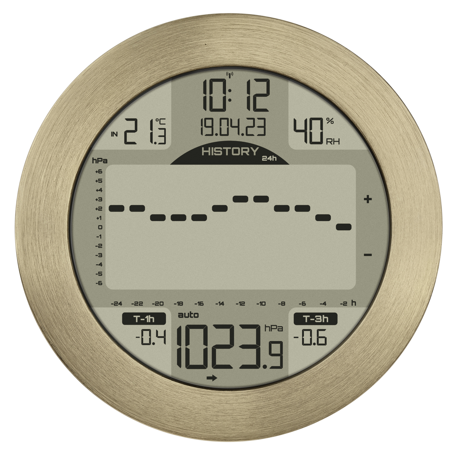 <br />- Großes Balkendiagramm für Luftdruckveränderung in 3 optionalen Zeiträumen: 24 Stunden / 3 Stunden / letzte Stunde