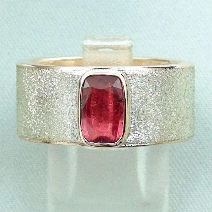 Ein wirklich sehr schöner Damenring bzw Herrenring aus Silber und Gold mit einer Goldfassung. Der Turmalinring wurde mit einem 0,94 ct schweren Turmalin in der Farbe Blutrot gefasst. Das Innenband ist aus Gold und das Außenband ist aus Sterling Silber gefertigt.. Ein unglaublich schöner Designerring zu einem unglaublichen Preis. Jeeds unserer Schmuckstücke wird in Handarbeit und ausschließlich aus echten Materialien hergestellt. Sie sind auf der suche nach einem außergewöhnlichen massiven Goldring? Dann haben Sie mit unserem Designerring genau das Produkt gefunden, was Sie gesucht haben. Der Ring mit dem Turmalin ist nicht nur schön anzusehen, sondern auch noch ein absolutes Unikat! Der Silberring wird mit einem Echtheitszertifikat ausgeliefert. Der hier verwendete Turmalinring hat einen perfekten cushion kissen Schliff.