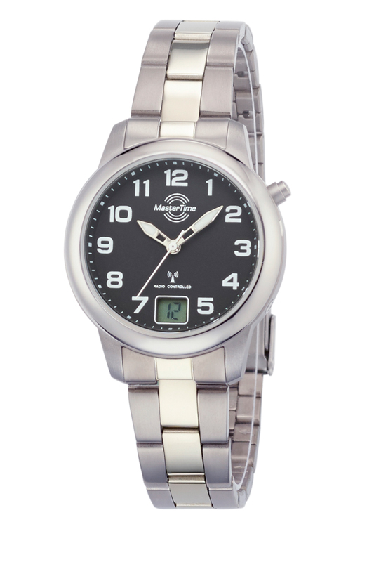 Sportliche Funk Damenuhr aus Titan mit digitaler Datumsanzeige. Die Damen-Armbanduhr ermöglicht eine automatische Umstellung zwischen Sommer- und Winterzeit. Das Zifferblatt dieser Funkuhr ist gut ablesbar und mit Leuchtzeigern versehen.