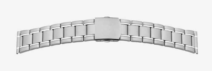 <br />Aus satinierten und polierten gefalteten Gliedern. Faltschließe mit Sicherheitsbügel mit 20 mm Schließen-Anstoß. Bandbreite 20-22 mm, Bandhöhe 3,0 mm, Bandlänge 170mm, individuell kürzbar durch 6 herausnehmbare Glieder. 1 Paar gerade Wechselanstöße in 24 mm werden mitgeliefert.