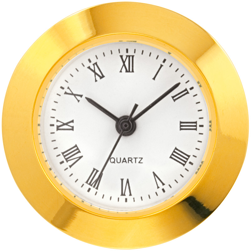 Mini-Einsteckwerk Import Trommel Ø 24mm, Lünette Ø 25,2mm gelb, Zifferblatt weiß-antik, römische Zahlen