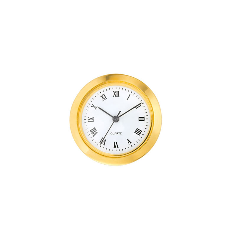 Mini-Einsteckwerk Import Trommel Ø 27mm, Lünette Ø 30,5mm vergoldet, Zifferblatt weiß-antik, römische Zahlen