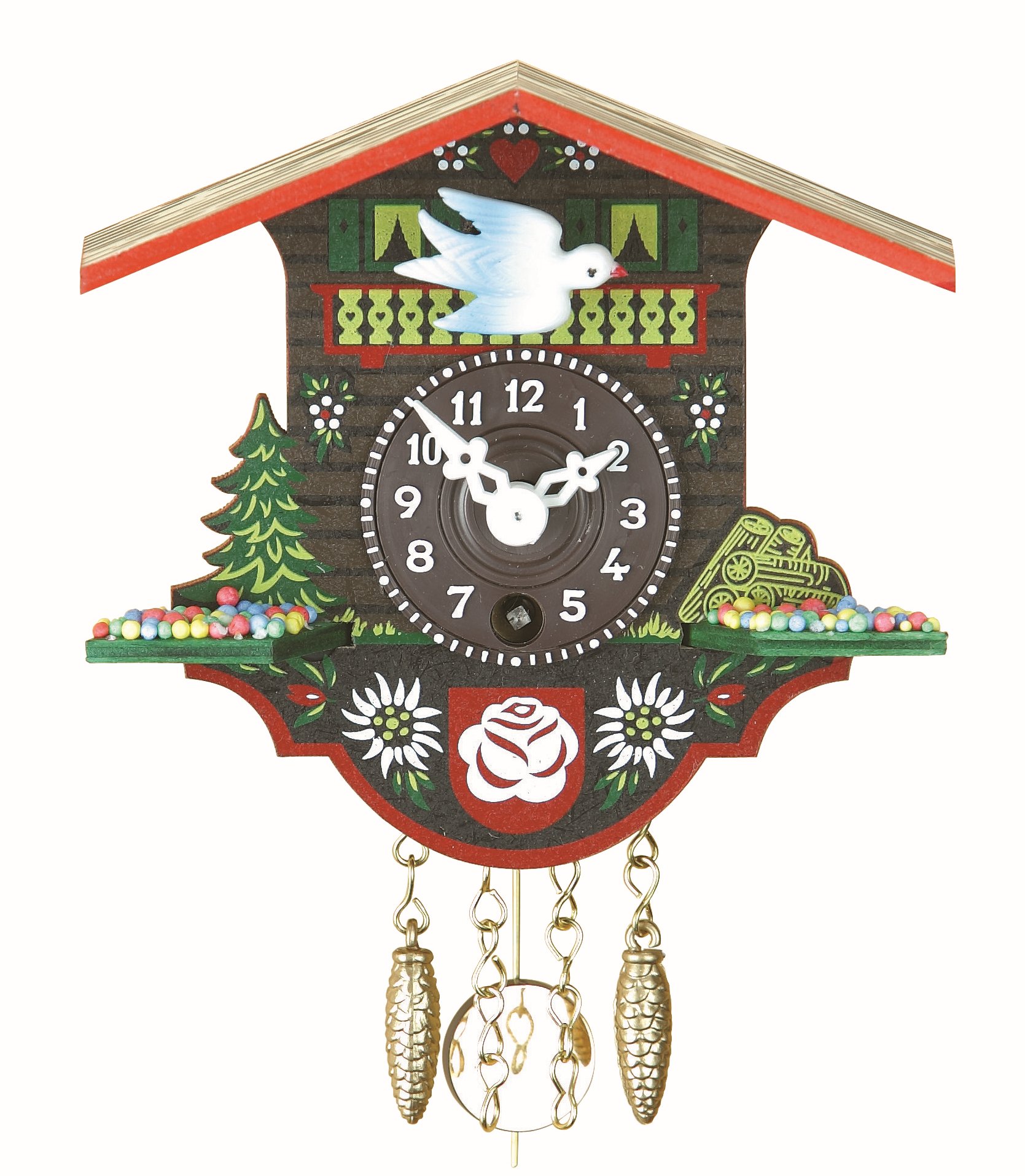 Das Schweizer Haus: Pendeluhr mit 1-Tag-Federzugwerk, handgefertig und bemalt im Schwarzwald. Höhe 10cm.
