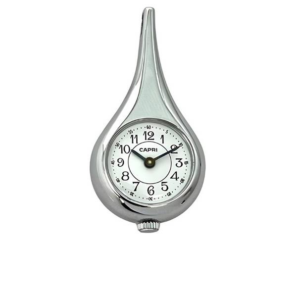 Kleine Capri Anhängeuhr in Tropfenform – Handaufzug-Werk Swiss Made (Stiftanker)- weisses Zifferblatt- schwarze Klassikzahlen- schwarze Stabzeiger- Gangreserve bis 30 Stunden- verchromtes Messing Gehäuse in Tropfenform (poliert)nicht wasserfest! l: 40 mm, b; 21mm, h: 9 mm2 Jahre Garantie Preis inkl. Etuie Original Anhängeuhr mit Garantie vom Schweizer Uhrmacher Aus Hygienegründen oder um die Arme frei zu halten, werden die beliebten Uhren gerne um den Hals getragen. Wir empfehlen gut verarbeitete, robuste Ketten mit einer Länge von min. 60cm. (Leider führen wir diese nicht) Wir führen in unserem Uhren Fachgeschäft in Basel noch viele weitere Anhängeuhren an Lager. Auch im Schweizer Online Uhren Shop finden Sie noch mehr Umhänge. Einfach auf das Logo klicken »