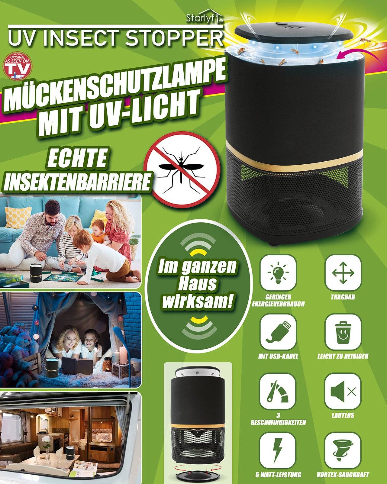 <br /><br />Unsere Mückenschutzlampe mit UV-Licht wirkt im ganzen Haus und ist eine echte Insektenbarriere.