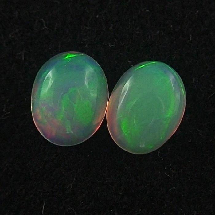 Echtes Multicolor Welo Opal Pärchen 1,04 u. 0,91 ct – Grünlastige Milchopale mit Zertifikat online kaufen – Perfekt geeignet für Opal-Ohrstecker oder Opalohrringe