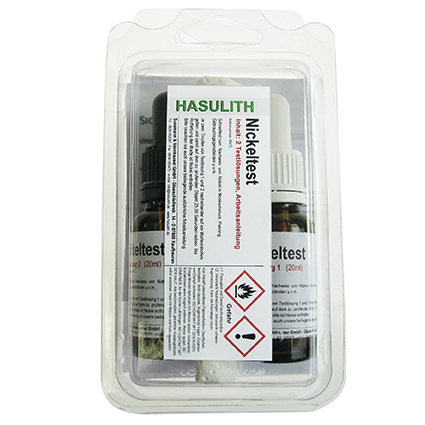 Der Nickeltest ist ein hilfreicher Schnelltest zum Nachweis von Nickel in Metallen, Legierungen und galvanischen Schichten. Über eine Farbreaktion erfolgt ein Nachweis in der Regel ohne Beschädigung des Prüfstücks. Nickelallergiker können mit diesem Test stark nickelhaltige Gegenstände mit hohem Allergiepotential erkennen und den Kontakt damit künftig vermeiden.