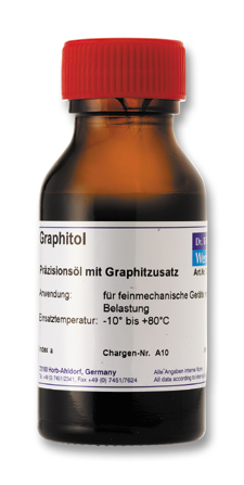 Mit Kolloidgraphit, teilsynthetisch, -10° / +60°, Viskosität 350 cst. Für Großuhr-Zugfedern, Schaltfedern, -hebel, -stifte.