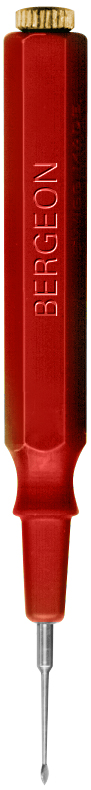 Im Schaft befinden sich unter einer Rändelmutter 2 Ersatznadeln.