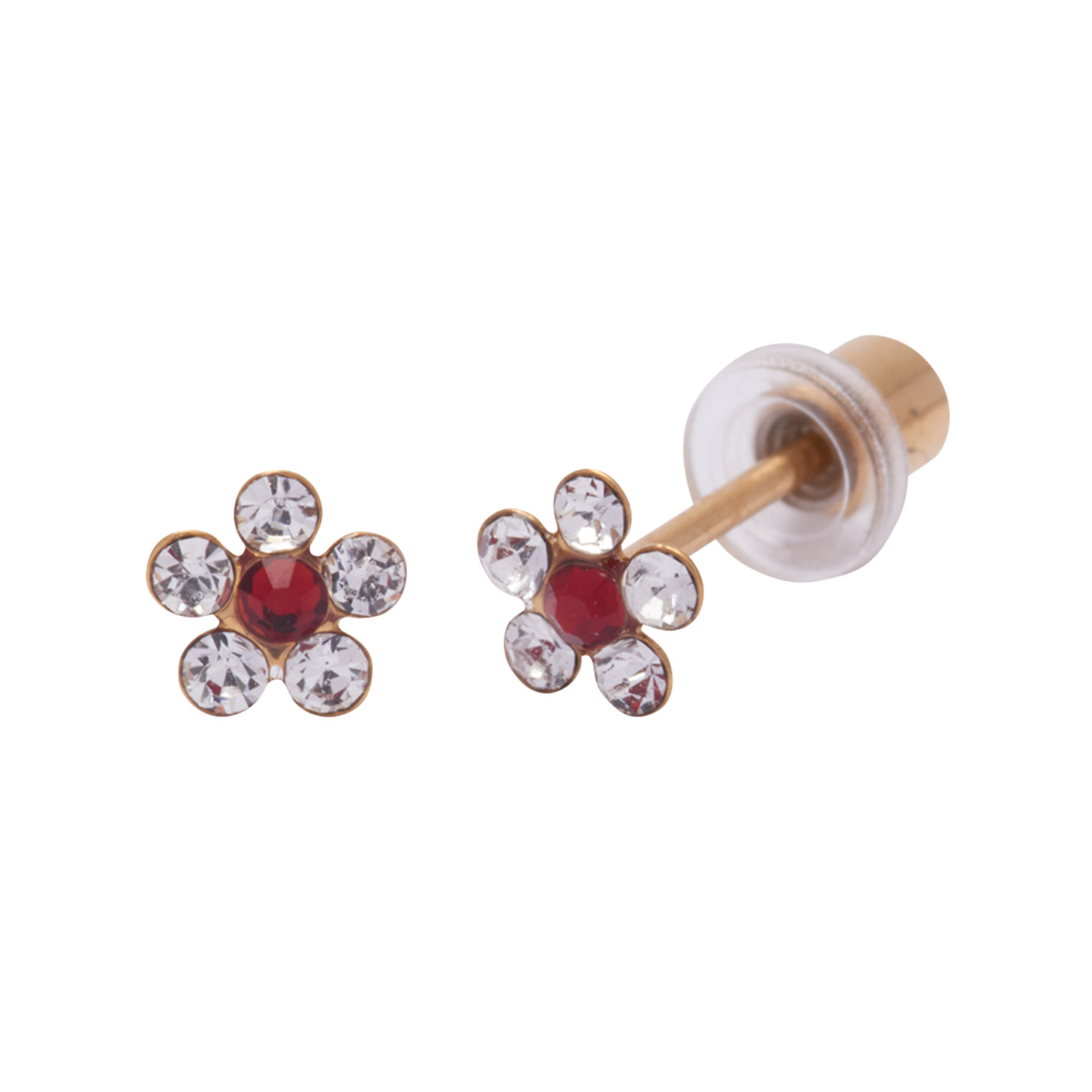 Ohrlino Erstohrstecker Blume, gelb, 5 Kristalle rubinrot und weiß