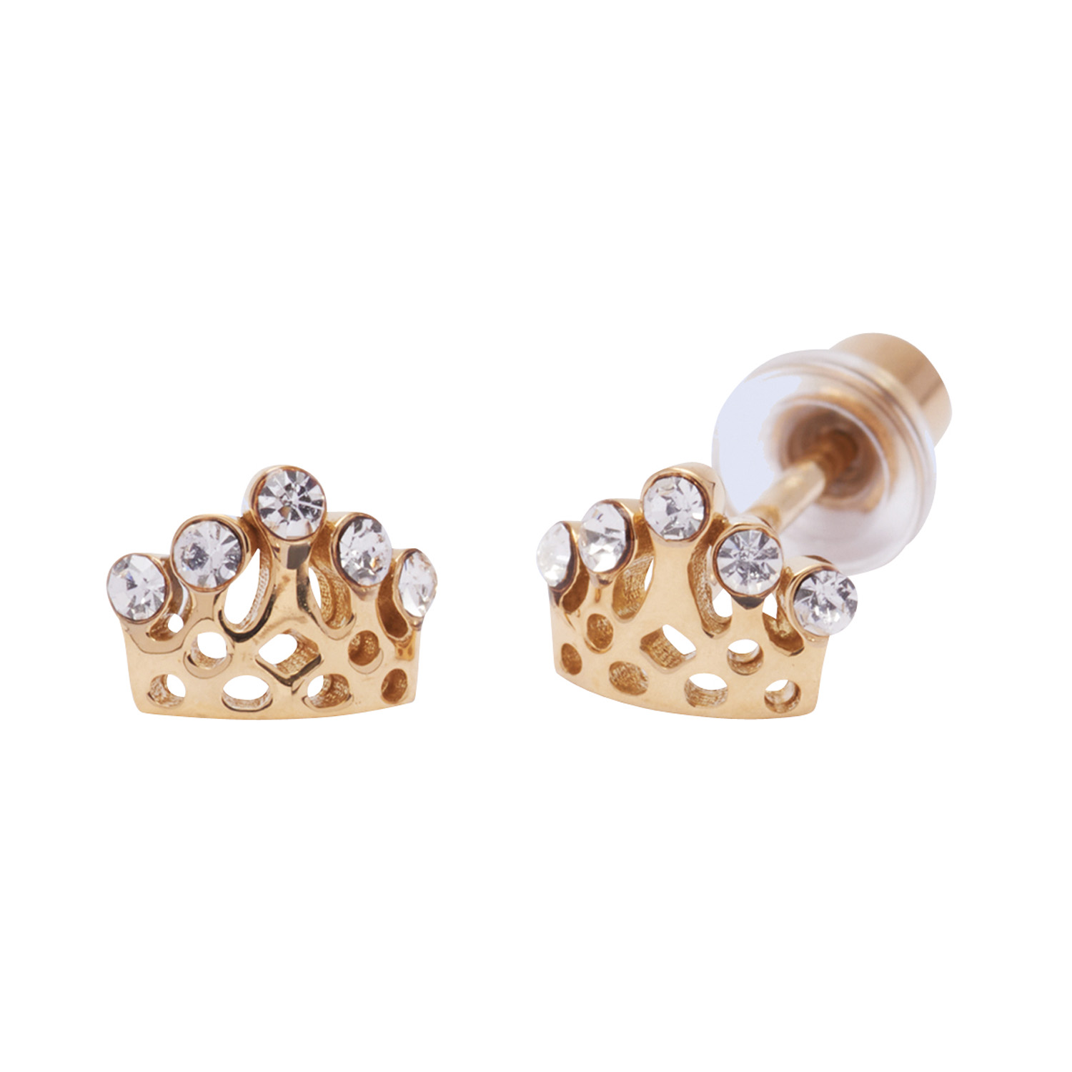 Ohrlino Erstohrstecker Kronenform gelb 7mm, 5 Kristalle klar