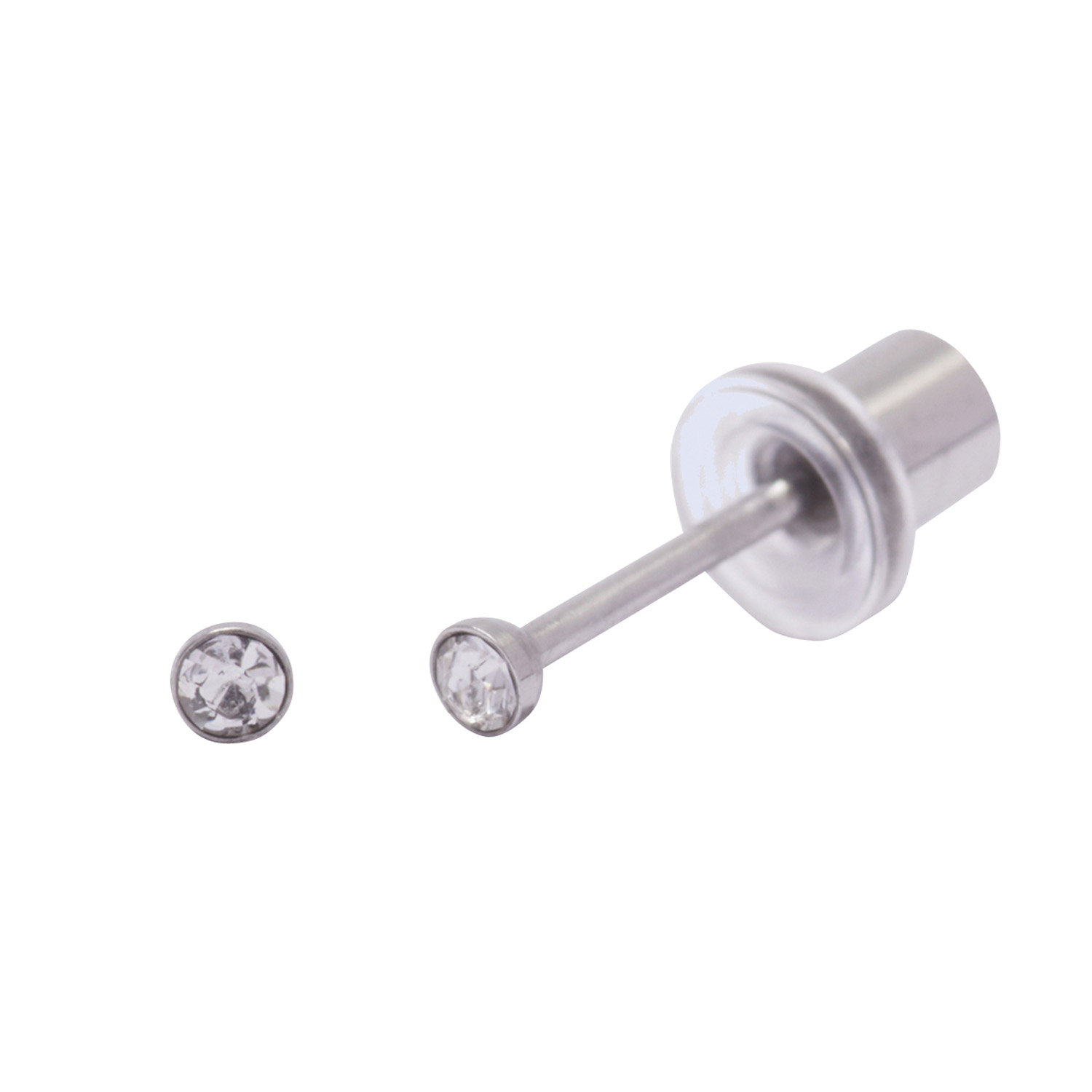 Ohrlino Erstohrstecker Rundfassung weiß 2mm, Kristall weiß 1mm