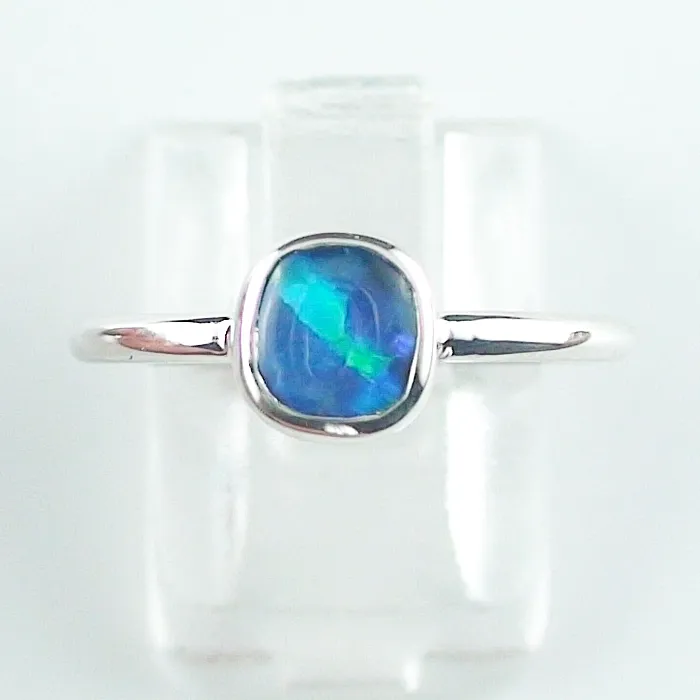 Massiver 935er Silberring mit Blau Grünem Türkisem Semi Black Opal (0,49 ct) aus Lightning Ridge | Lieferung inklusive Zertifikat.