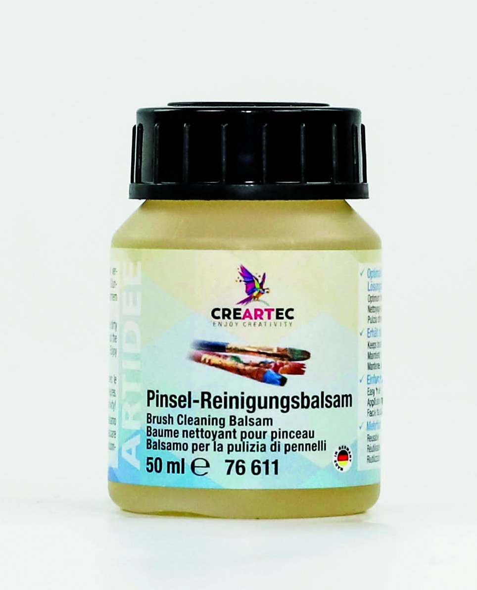 <br /><br />Endlich ein Reiniger, der die Geschmeidigkeit von Pinseln nach Benutzung erhält! Ökologischer Intensivreiniger, nur durch leichtes Einmassieren lösen sich selbst eingetrocknete und verklebte Schmutzpartikel. Ohne Lösungsmittel! Inhalt 50ml.