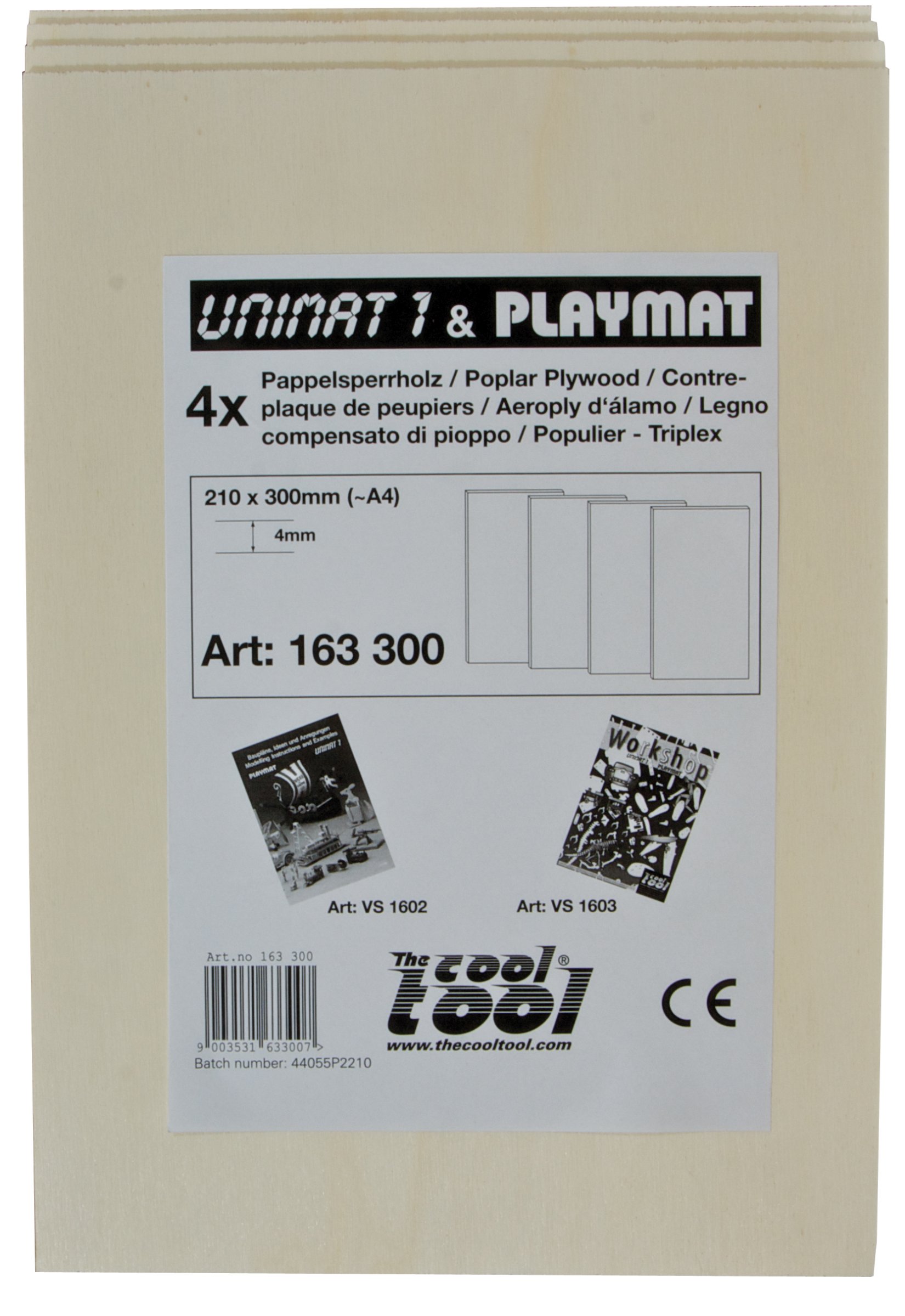 Ideales Zubehör für das PLAYMAT Werkzeug-Set: Pappelsperrholz 4mm im Format DIN A4 (210 x 297mm), Inhalt: 4 Stk.
