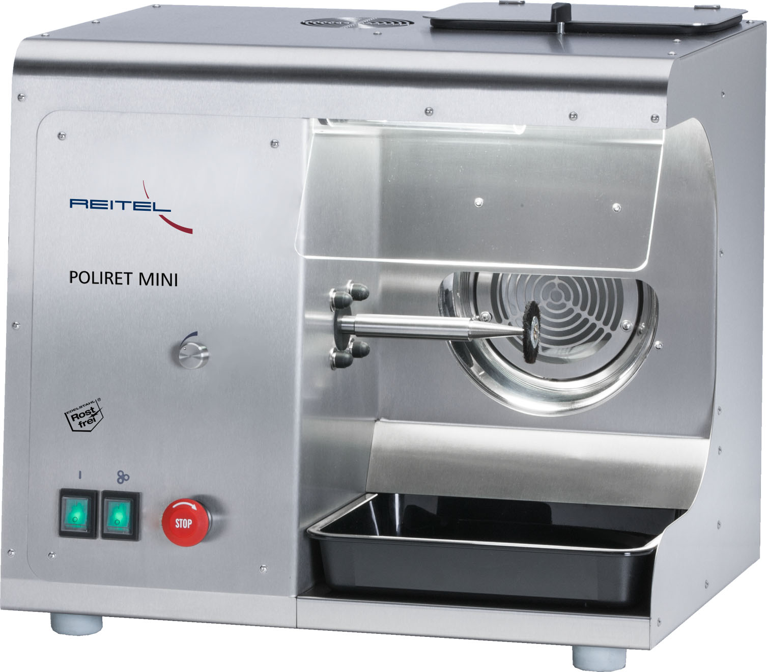 <br /><br />Der Arbeitstrog aus Kunststoff ist einfach entnehmbar und leicht zu reinigen. Eine hohe Wirtschaftlichkeit und optimale Materialanpassung werden durch die stufenlose Drehzahlregulierung mit einem starken 600 W Motor erreicht. Alle Edelstahlvarianten der POLIRET Serie können komfortabel und platzsparend direkt an die Wand gestellt werden, da die Absaugluft nach oben abgeleitet wird.