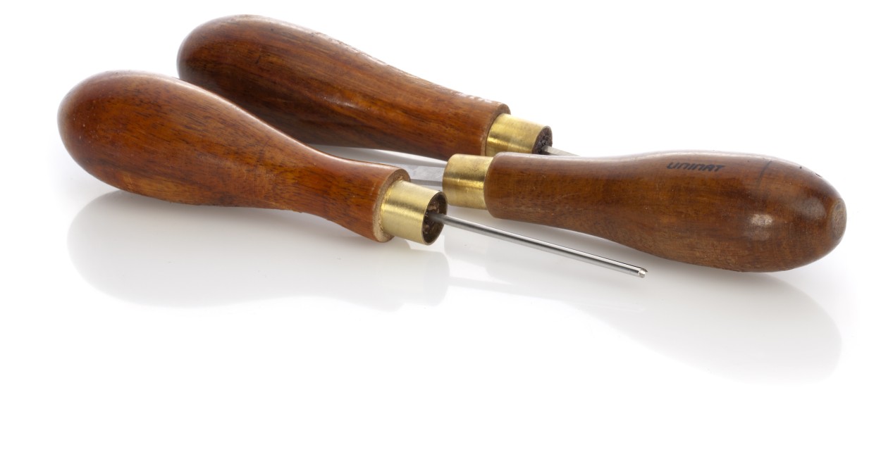 Aus HSS-Carbonstahl, bestehend aus Abstechstahl, Rundeisen und herkömmlicher Drechselröhre.