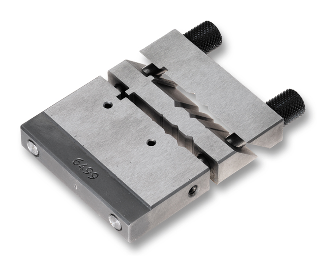 Scharnierhalter aus geschliffenem und gehärtetem Stahl, für Werkstück-Ø: bis 11 mm, Schnittmöglichkeiten: 90° und 45°.
