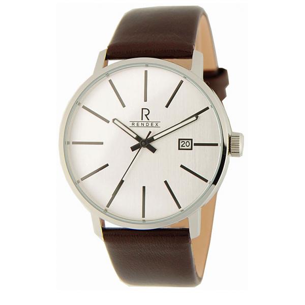 RENDEX Design Quartzuhr, Edelstahl mit Lederband