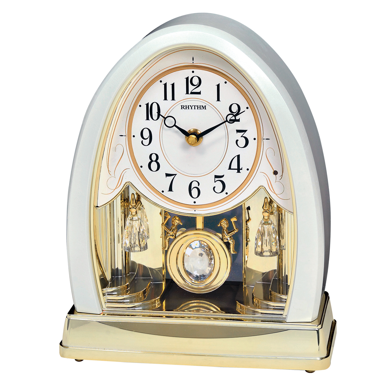 Rhythm 7641 weiss/champagner Tischuhr mit Musik