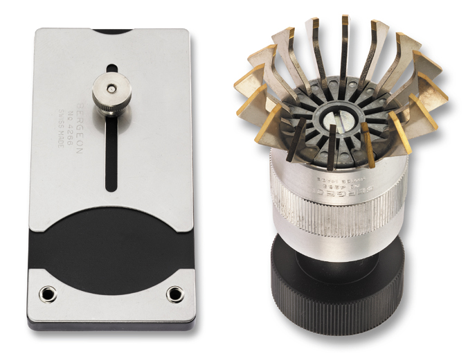 Für Kunststoffgläser, universell für alle Ø von 10 bis 45 mm, mit 16 selbstspannenden Greifarmen aus Messing, die sich durch Drehen des schwarzen Griffes öffnen und schließen, mit einer Glasaufnahmeplatte zum Aufsetzen der Gläser.