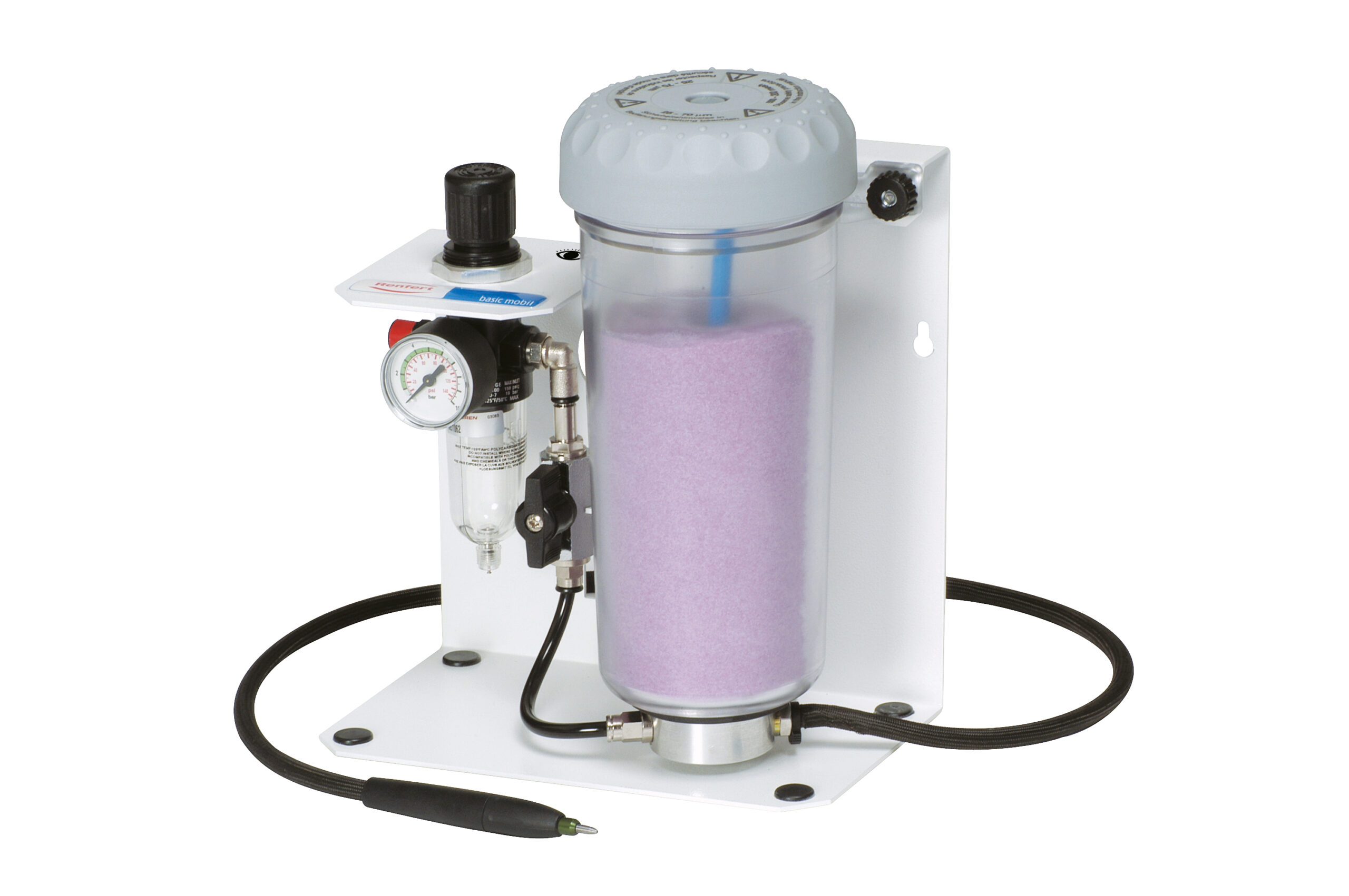 Das Sandstrahlgerät wurde auf eine Grundkonstruktion reduziert. Dadurch ist der mobile Einsatz nur vom Anschluss an die Druckluft abhängig. Es ist kein Stromanschluss erforderlich. Mit verschiedenen