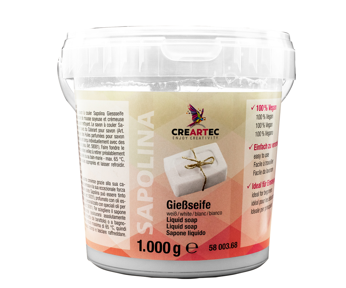 <br /><br />Jede Seife können Sie in jedem Farbton, mit jedem gewünschten Duft, auf jeden Hauttyp mit allen pflegenden dermatologische Eigenschaften abstimmen. Unsere Sapolina Gießseife ist völlig ungefährlich – Sie können Ihre Seifenstücke einfach in der Küche zusammen mit Ihren Kindern anfertigen. Unsere moderne Glyzerinseife wird produziert nach den neuesten Richtlinien der Kosmetikverordnung: Natürlichkeit, Hauthygiene und Reinigungskraft sind Garanten für ein kreatives, duftendes und pflegendes Ergebnis!
