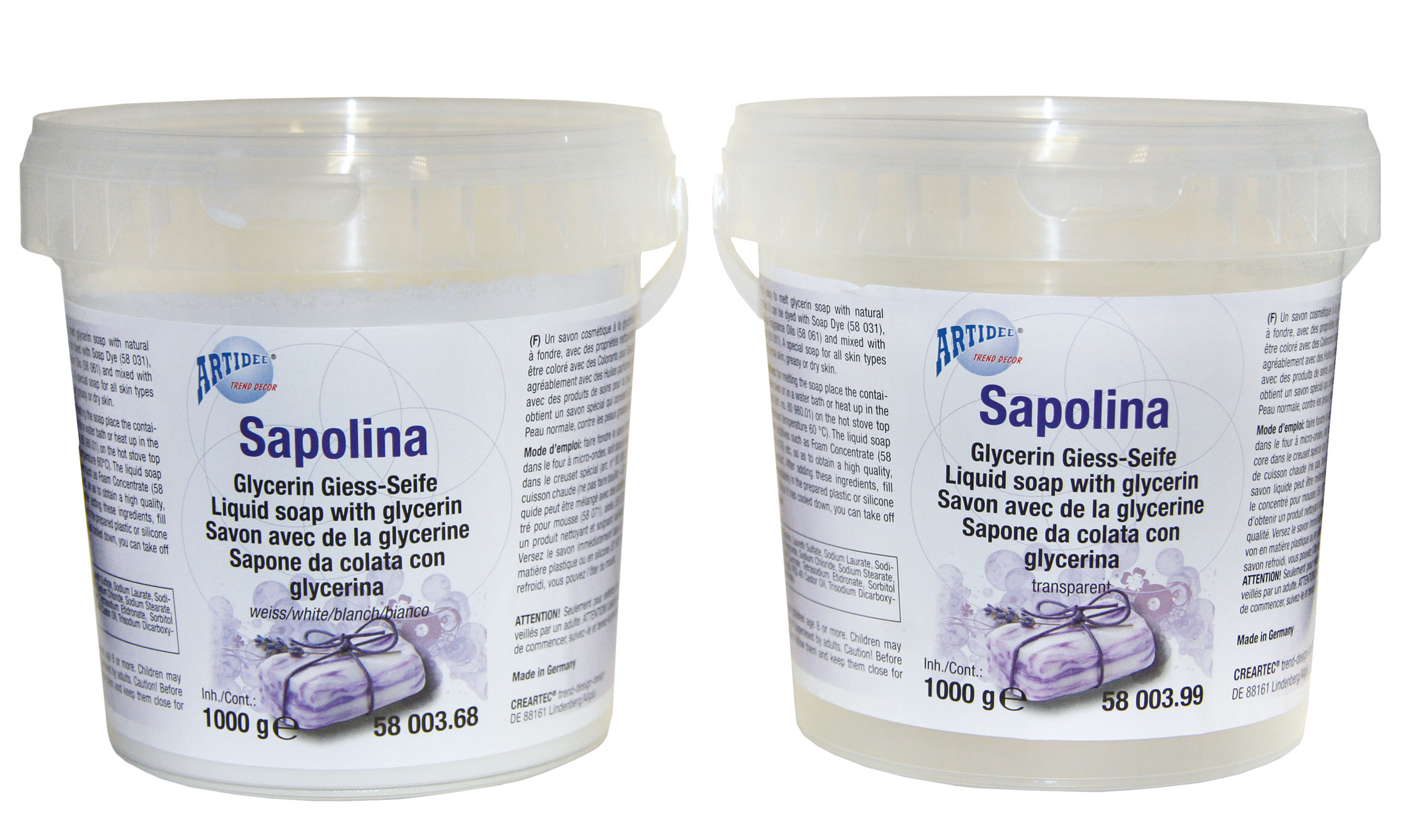 <br /><br />Jede Seife können Sie in jedem Farbton, mit jedem gewünschten Duft, auf jeden Hauttyp mit allen pflegenden dermatologische Eigenschaften abstimmen. Unsere Sapolina Gießseife ist völlig ungefährlich – Sie können Ihre Seifenstücke einfach in der Küche zusammen mit Ihren Kinder anfertigen. Unsere moderne Glyzerinseife wird produziert nach den neuesten Richtlinien der Kosmetikverordnung: Natürlichkeit, Hauthygiene und Reinigungskraft sind Garanten für ein kreatives, duftendes und pflegendes Ergebnis!