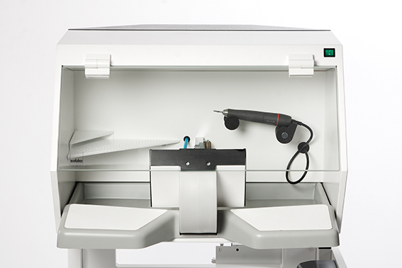 Die Schleifbox ist für die Arbeitsvorbereitung und besonders staubintensive Arbeiten bestens geeignet.