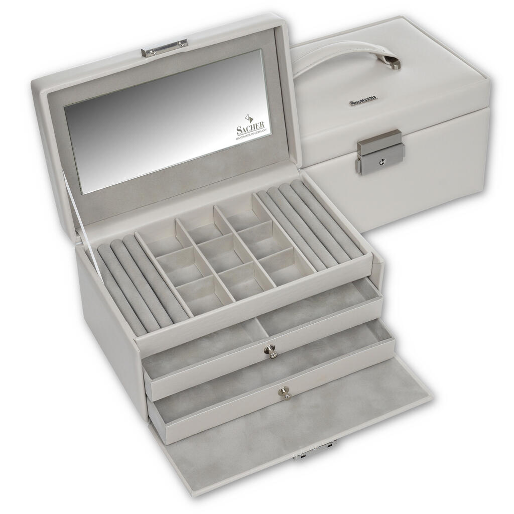 <br /><br />Edles Design, hochwertiges italienisches Vollrindleder und feinste Handwerkskunst. Der Schmuckkasten in der eleganten Farbe Sand wird im Interior farblich passend abgestimmt. Die perfekte Kombination aus Eleganz und Modernität macht diesen Koffer zu einem echten Blickfang in jedem Raum.