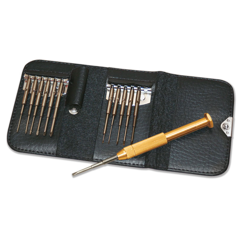T-Profil-Schraubendreher-Satz, 10tlg. Mit T3/T4/T5/T6/T7/T8/T9/T10. Für Profis der Feinmechanik! Passen in jede Tasche. Messinghandgriff, Verankerung der Klingen im Etui, Größenkennzeichnung, Chrom-Vanadium gehärtet.