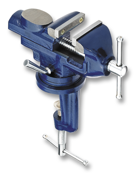 Mit Schraubzwinge für Tischplatten bis 48 mm Stärke. Das Schraubstockoberteil ist drehbar und durch einen Hebel fest zu arretieren. Mit ovalem Amboss (40 x 30 mm).