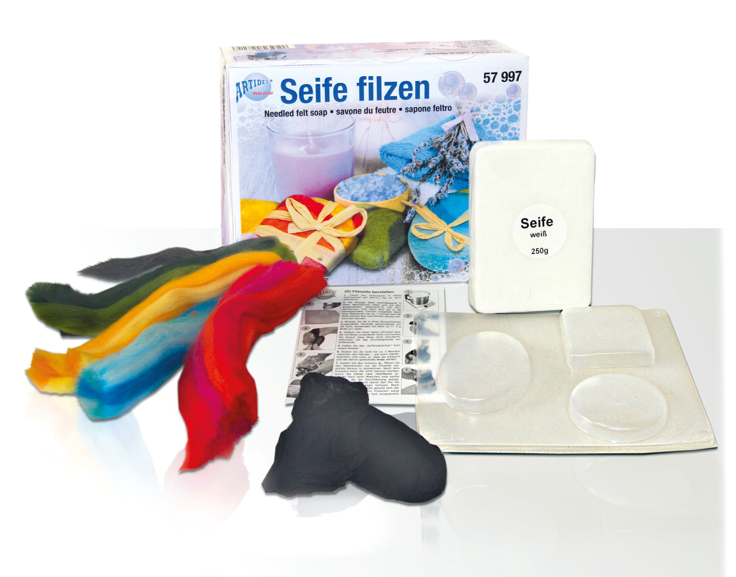 Seife filzen ist eine wundervolle Variante des Seifen gießen: Es entstehend tolle Wohlfühlseifen, die durch ihren bunten Filzmantel einen seidig weichen Schaum entwickeln. Der raffinierte Effekt: Die Filzhülle schrumpft beim Händewaschen mit der Seife – ein außergewöhnlich sanfter, angenehmer Peelingeffekt verwöhnt Ihre Haut.