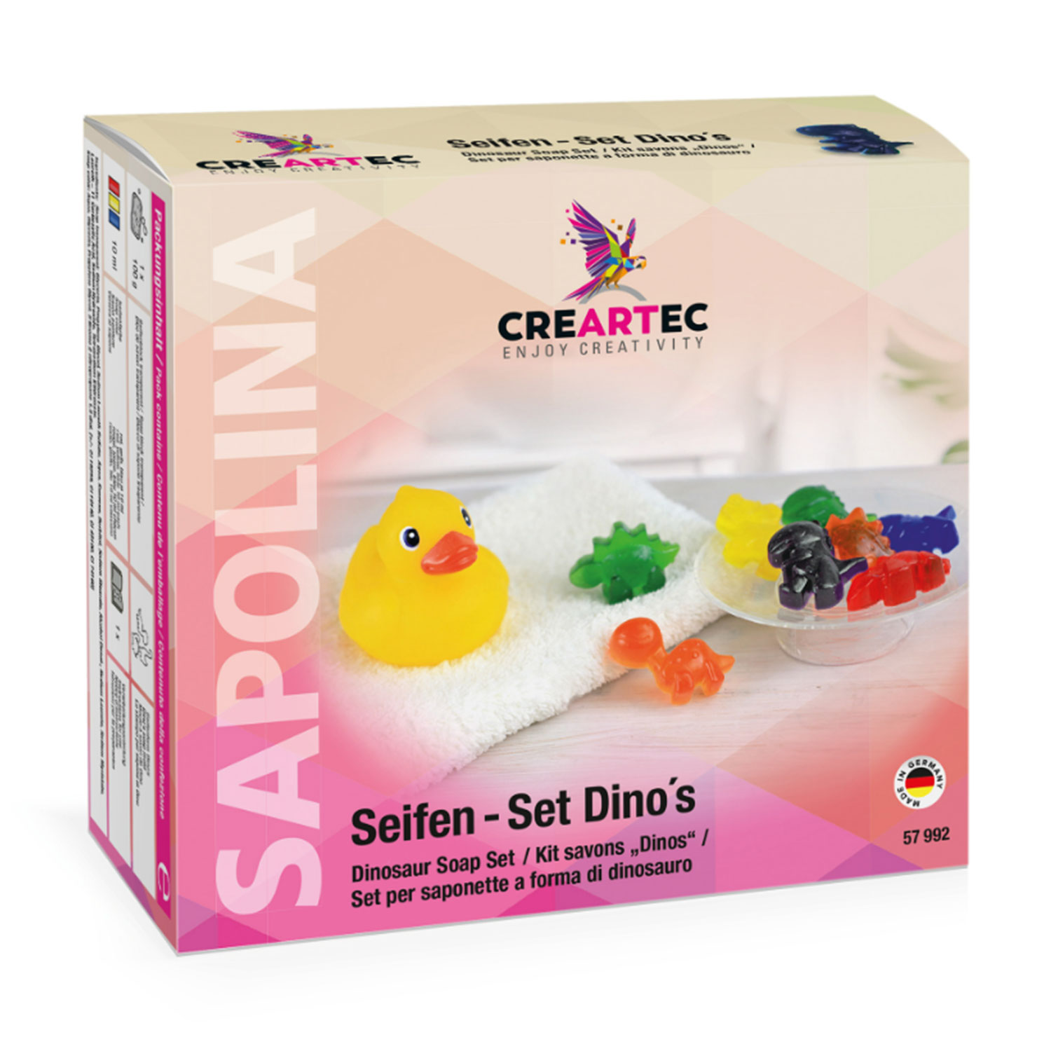 In diesem Set ist alles enthalten um kunterbunte, schäumende Seifen-Dinos selbst herzustellen. Hübsch verpackt eignen sich die kleinen Seifen auch perfekt als Geschenk oder Mitbringsel.