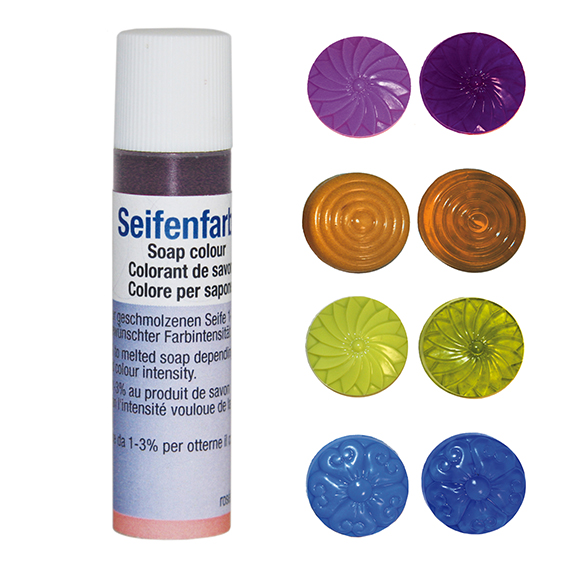 <br /><br />Beim Einmischen dieser transparenten Farben in die weisse Seifenmasse verfärbt diese sich pastellartig – wunderschön opak und undurchsichtig. Die Zugabemenge ist abhängig nach gewünschter Farbintensität, ca. ein bis drei Prozent. Sie können auch die Farben untereinander Mischen für Ihren individuellen Farbton!