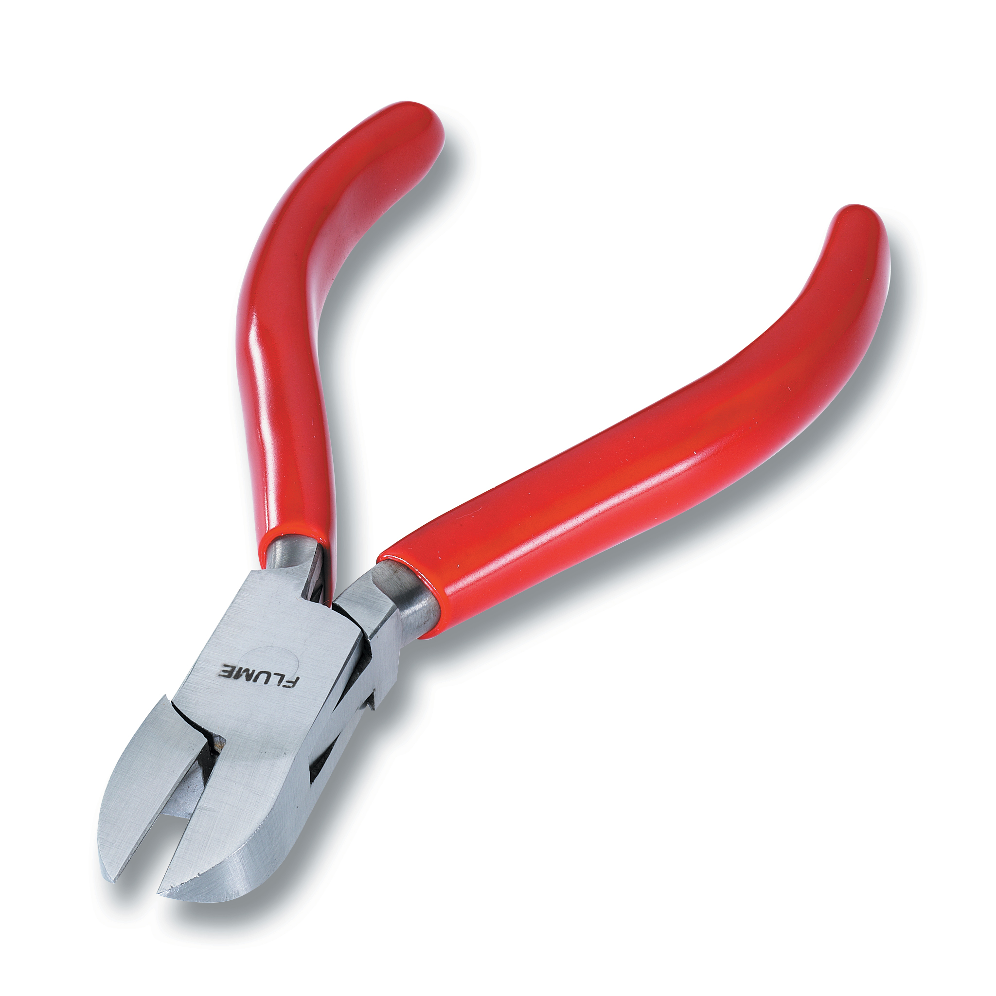 Seitenschneider Flume mit kunststoffüberzogenen Griffen mit durchgestecktem Gewerbe.