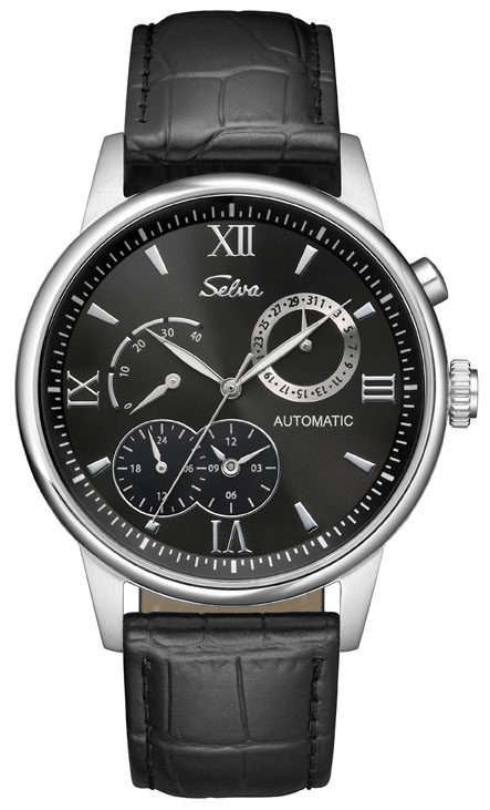 SELVA Herren-Automatikuhr »Nando« mit Gangreserve, silber/ schwarz