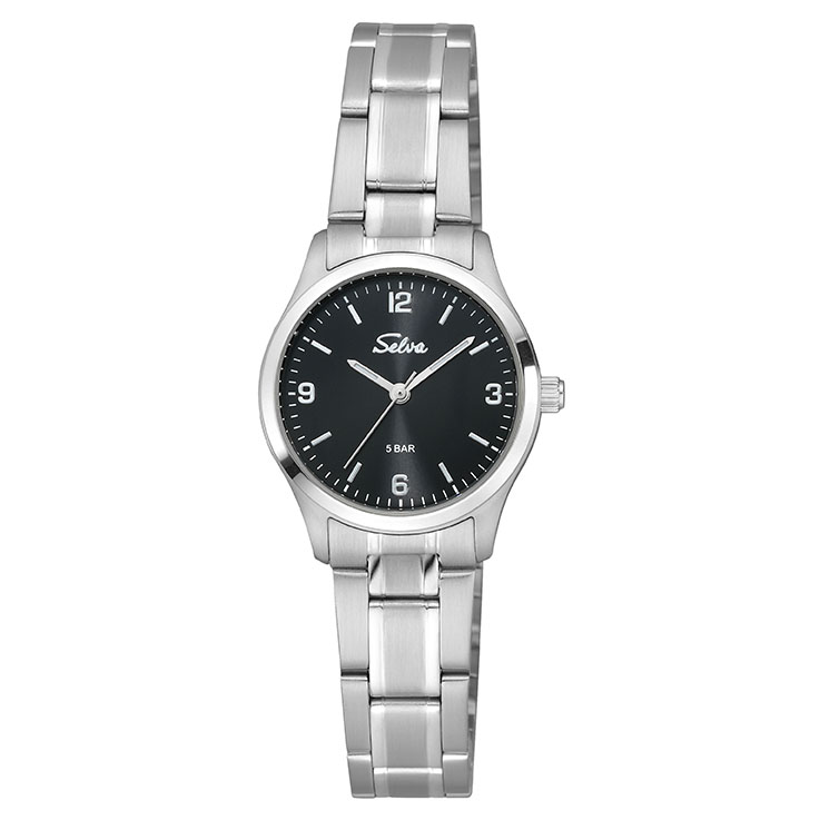 SELVA Quarz-Armbanduhr mit Edelstahlband, Zifferblatt schwarz Ø 27mm