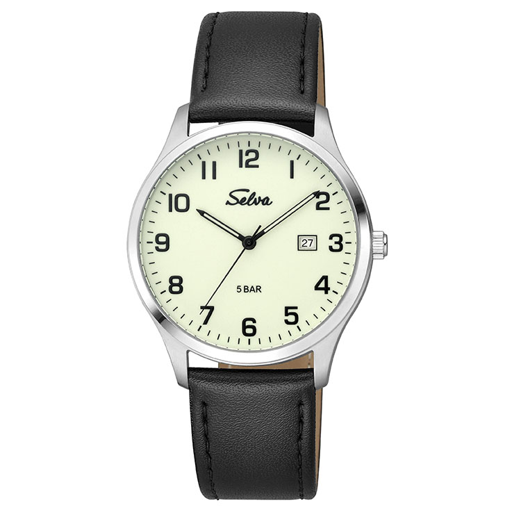 SELVA Quarz-Armbanduhr mit Lederband Zifferblatt leuchtend Ø 39mm