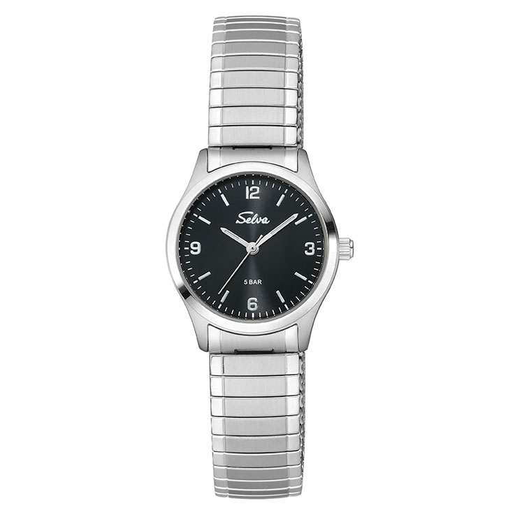 SELVA Quarz-Armbanduhr mit Zugband, Zifferblatt schwarz Ø 27mm