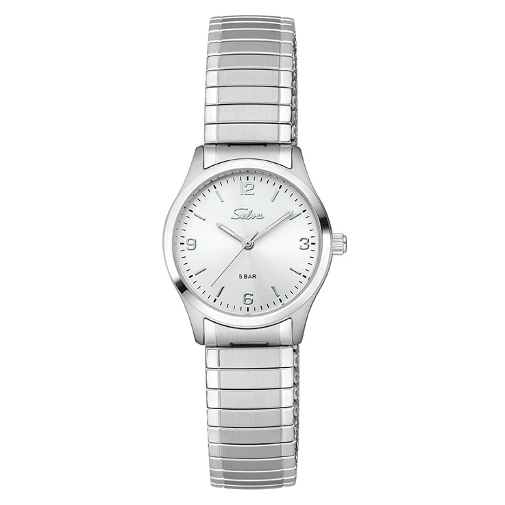 SELVA Quarz-Armbanduhr mit Zugband, Zifferblatt silber Ø 27mm