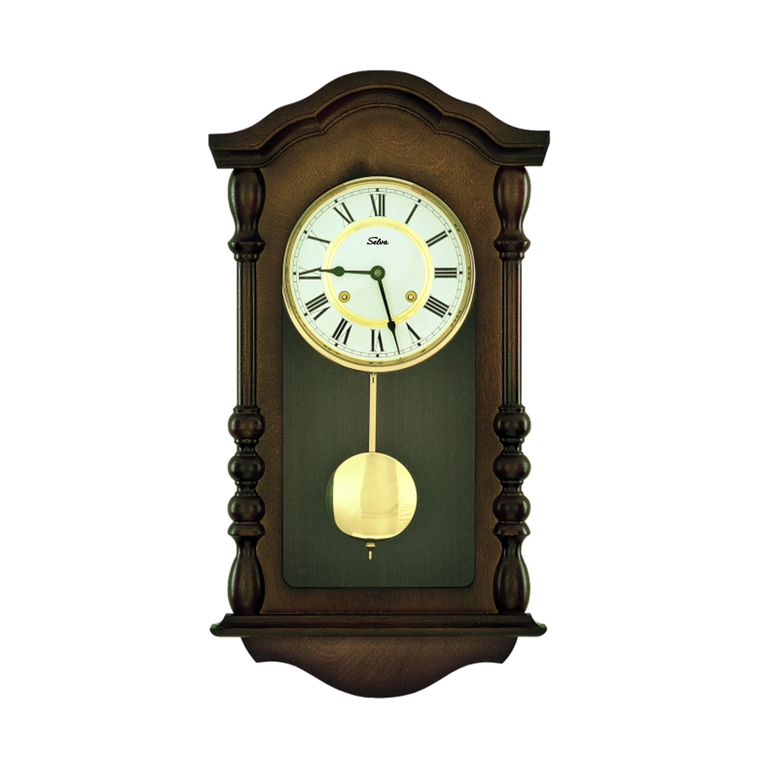 <br /><br />Quarz-Regulator, aus Nussbaum gefertigt, massives Holzgehäuse, klassisch gedrechselt, wählbar Bim-Bam-Schlag zur halben und zur vollen Stunde oder Westminstermelodie zur Viertel- und zur vollen Stunde, automatische Nachtabschaltung, klassisch gehaltenes Ziffernblatt mit römischen Zahlen.