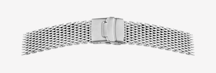 <br />Satinierter O-Glied Mesh, Bandbreite 22 mm mit 22 mm Gehäuseanstoß. Bandhöhe 4,0 mm, Bandlänge 162 mm, nicht kürzbar! Kein normaler Anstoß. Der Federsteg wird durch den letzten O-Link durchgezogen und am Gehäuse fixiert.