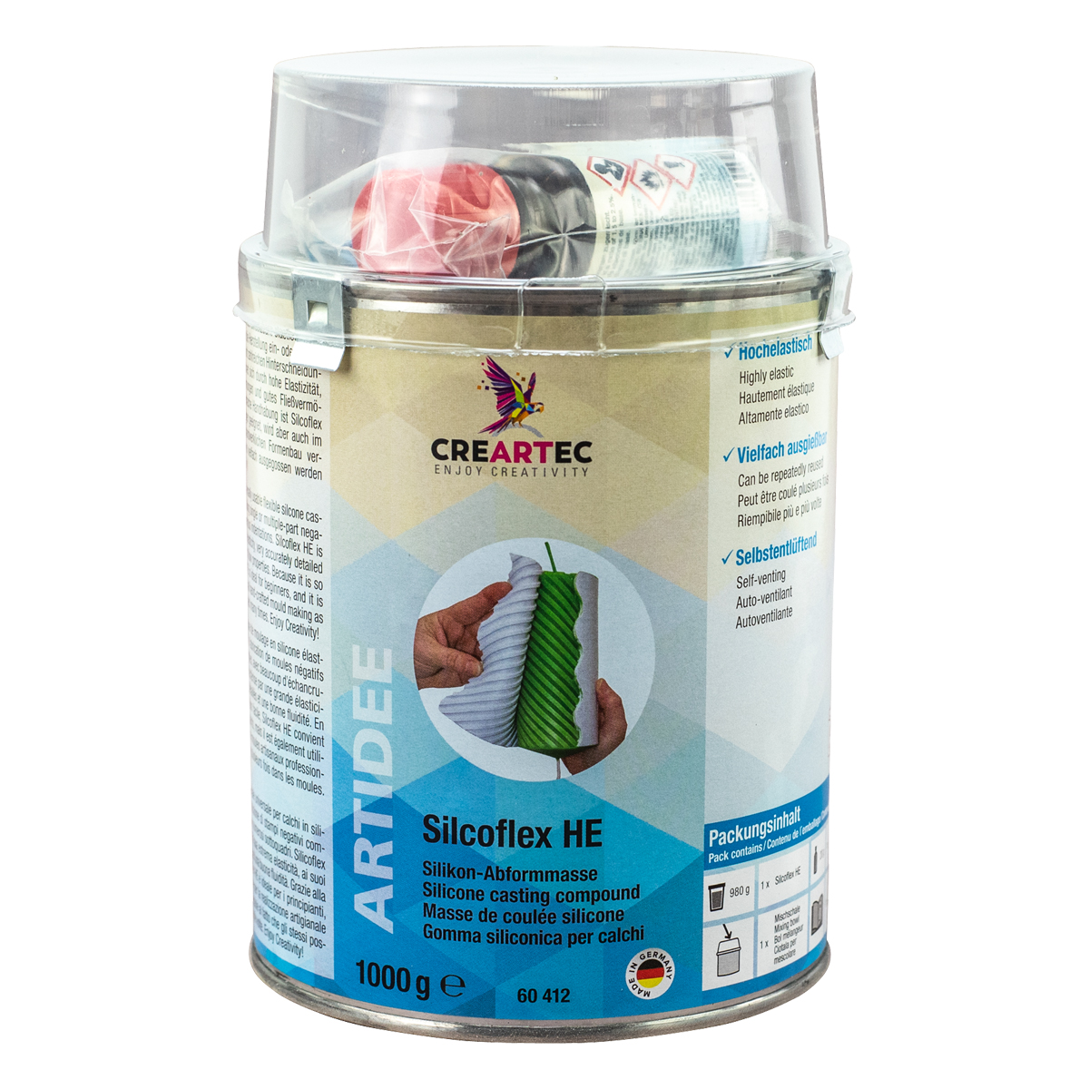 <br /><br />Silicon-Kautschuk HE ist eine großartige, hoch-einreißfeste Spezial-Abformmasse. Es eignet sich als hochwertiges Silicon besonders gut für das Abformen komplizierter Modelle und Konstruktionen, auch solcher mit erheblichen Hinterschneidungen. Dabei ist auch das Anfertigen mehrteiliger Formen im Rahmen des Rapid-Prototyping möglich, wobei mit dieser Methode auch große Skulpturen, auch solche mit Hinterschneidungen, in Form gebracht werden können.