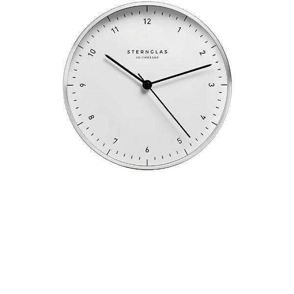 Das schlichte Bauhaus-Design mit dem weissen Zifferblatt und schlichten schwarzen Klassikzahlen verleihen der Wanduhr eine zeitlose Eleganz. Die Wohnraumuhren von Sternglas sind hochwertig verarbeitet, leicht ablesbar und äusserst ganggenau. Design Wanduhr – Sweep Silent Quartzuhrwerk (Cal. PM12888ST – CE-zertifiert!)- kontrasstarkes Zifferblatt (weiss)- schlichte Bauhauszahlen (schwarz)- grosse aufgedruckte Minuterie- schwarz Stabzeige und roter Sekundenzeiger- silbergraues Kunststoff-Aluminium Gehäuse- echtes Mineralglas (leicht gewölbt) Nur für den Innengebrauch Ø: 25.2 cm, h: 4.7cm, ca. 530g 2 Jahre Garantie Preis inkl. edle Kartonbox, 1 Batterie (LR6/AA, 1.5V), VRG Sternglas Designuhren Das Startup Unternehmen wurde 2016 von Dustin Fontaine in Hamburg gegründet. Seine Mission ist es, Zeitmesser zu gestalten, die den höchsten Qualitätsansprüchen gerecht werden. Zeitlose Designs, die Trends überleben. Der Fokus bildet das Wesentliche, ohne dabei die Details zu übersehen – gepaart mit dem Anspruch, Uhren zu schaffen, die für Jedermann erschwinglich sind – ganz gemäss des eigentlichen Gedankens des Bauhauses. Und das alles zu einem fairen Preis. Der Leitsatz des Bauhauses: Gutes Design für Jedermann zugänglich zu machen, ist der Kerngedanke der Sternglas Identität. Zeitlos schönes Design Made in Germany. ⬈ Sternglas