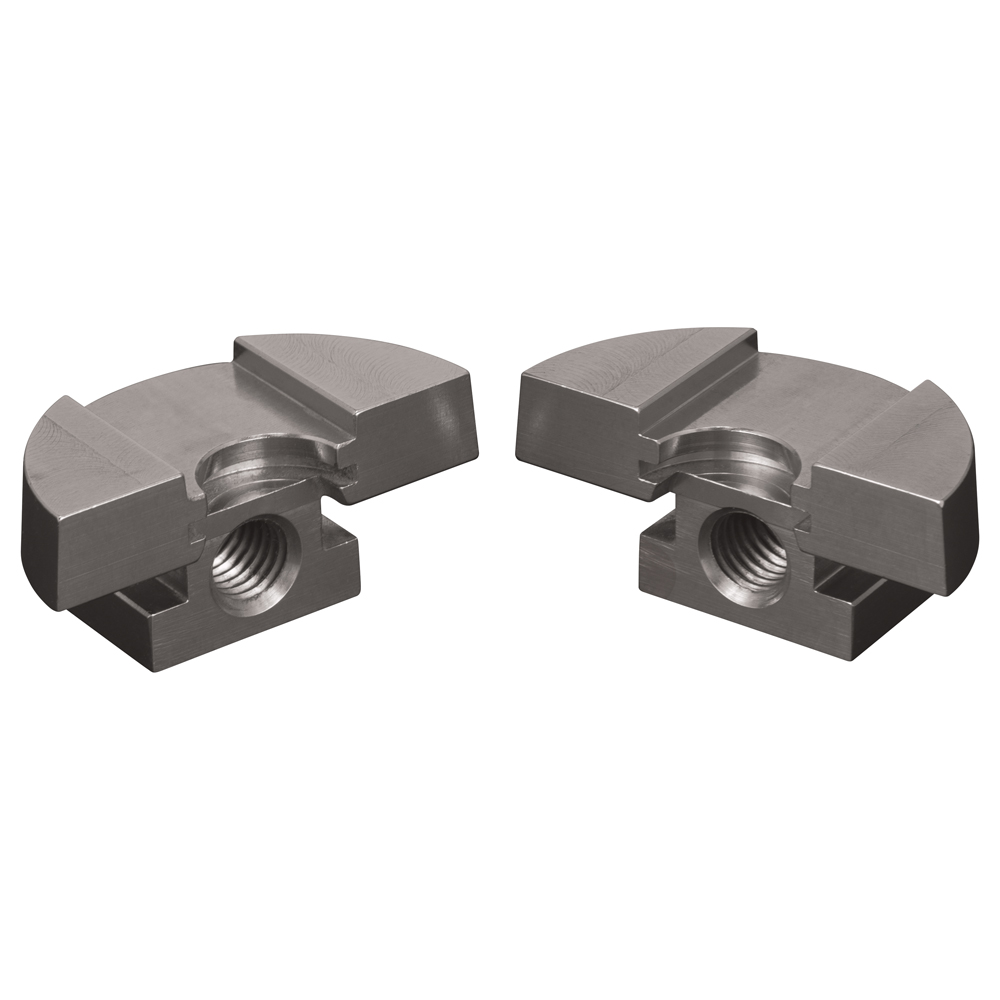 Jura Master Jaws sind der Schlüssel zur Verwendung von Classic QC-Spannvorrichtungen. Die Backen weisen eine einzigartige Form auf, die ein schnelles Hinein- und Herausgleiten der Vorrichtungen ermöglicht und für maximale Stabilität sorgt. Sie ersetzen die Standardbacken im GRS MicroBlock oder MicroBlock XL
