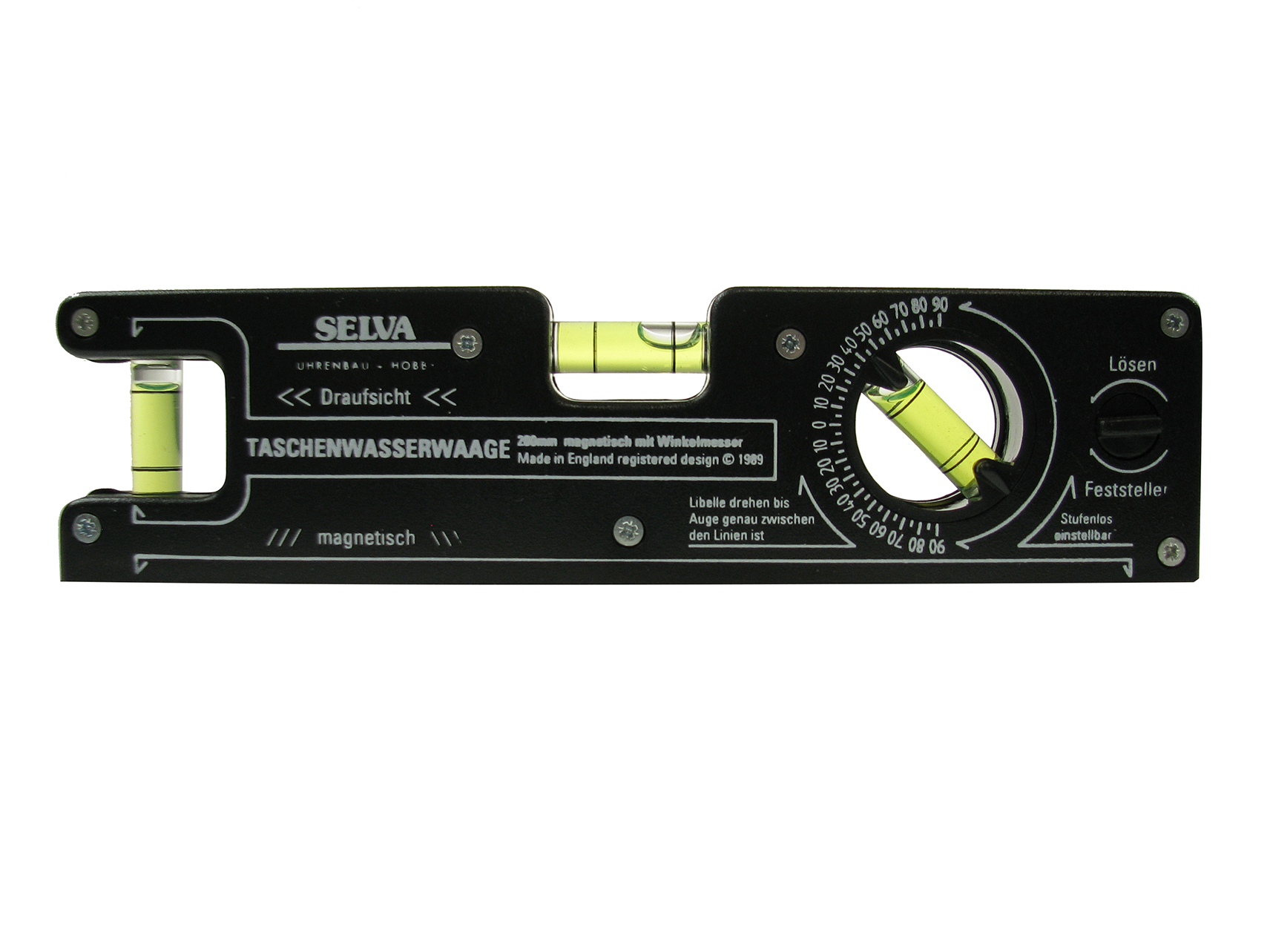 <br />eine eingebaute, magnetische Anlegeleiste für das Arbeiten an Metall-Oberflächen; die zusätzliche drehbare Libelle, mit der jeder Neigungswinkel eingestellt bzw. ermittelt werden kann.