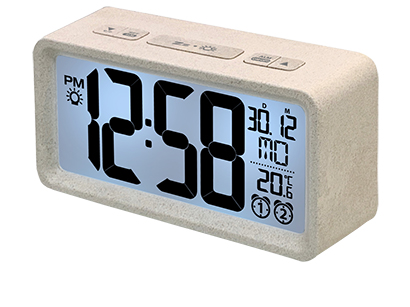Der Wecker aus nachhaltigem Material, denn das Gehäuse besteht zu 70% aus Weizenfasern, die biologisch abbaubar sind. Bereits bei der Injektion und Produktion dieses Weckers setzt sich nur eine sehr geringe Menge von Kohlenstoffdioxid frei. Für die Verkabelung und Drähte wird ungiftiges PVC verwendet, dazu wird besonders schonende Umweltfarbe verwendet.